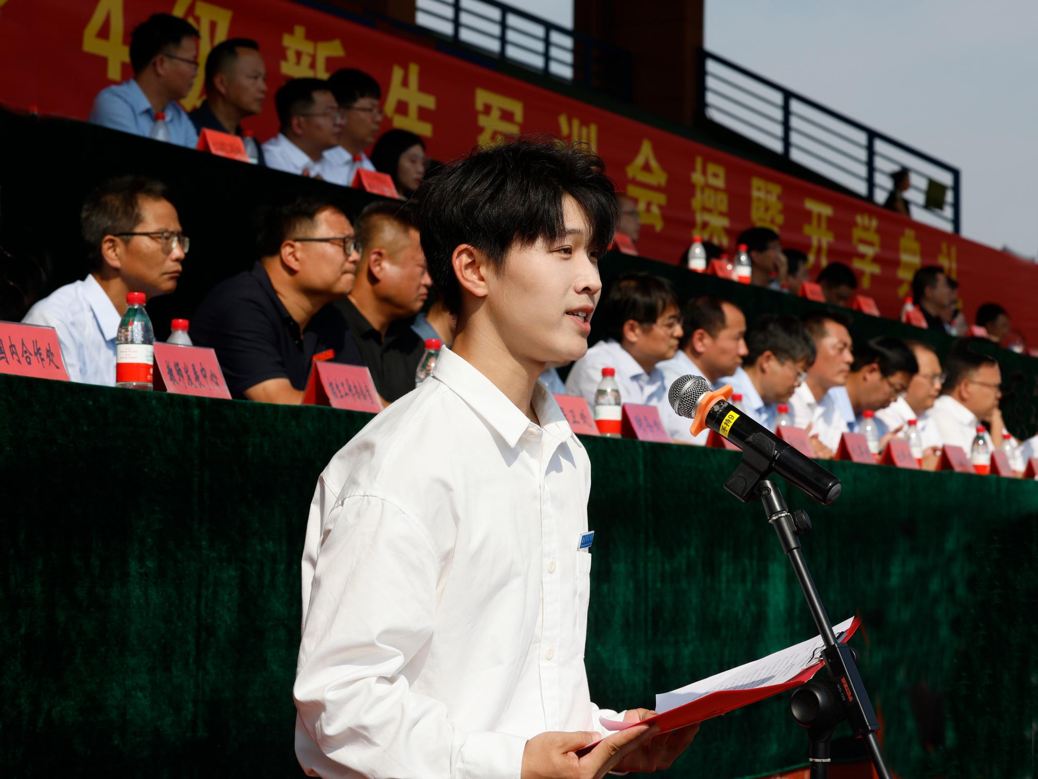 开学典礼上,本科生新生代表、新闻与传播学院2024级播音与主持艺术专业阎哲铭同学,研究生新生代表、马克思主义学院2024级马克思主义理论专业高子涵同学,在校生代表、文学院2023级汉语言文学专业张璐同学先后发言,分享自己的学习感悟,表达了与时代同频,与学校同行,挺膺担当的志向抱负。